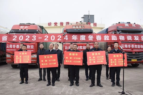 12月22日,省應(yīng)急管理廳、國(guó)家糧食和物資儲(chǔ)備局云南局、省糧食和物資儲(chǔ)備局聯(lián)合舉行2023—2024年度省級(jí)冬春救助物資發(fā)放儀式,向全省各州(市)發(fā)放棉衣、棉被、毛毯等冬春救助物資105792套(件)。