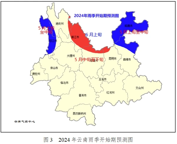 滇西北、滇中、滇東北等地森林火險(xiǎn)等級(jí)高。據(jù)省森林草原防滅火指揮部專家組預(yù)測,今冬(2023年12月至2024年2月)滇西北東部、滇中北部、滇東北等地森林火險(xiǎn)氣象等級(jí)4—5級(jí),滇東、滇中南部、滇西東部等地森林火險(xiǎn)氣象等級(jí)3—4級(jí),其余地區(qū)2—3級(jí)。明春(2024年3月至2024年5月)滇中、滇東、滇東南森林火險(xiǎn)氣象等級(jí)4—5級(jí),滇西北4級(jí),滇西南和滇東北等地為2—3級(jí)。雨季相繼開始后(見圖3),全省大部森林火險(xiǎn)氣象等級(jí)逐漸降低。建議:貫徹好全國全省森林草原防滅火電視電話會(huì)議精神,落實(shí)各項(xiàng)工作措施,持續(xù)關(guān)注邊境地區(qū)森林火災(zāi)入境隱患,抓好應(yīng)急值班、預(yù)警監(jiān)測、巡查檢查、隱患排查整治等工作。
