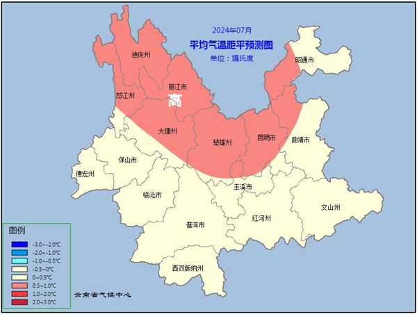 圖2 7月份平均氣溫距平預(yù)測示意圖
