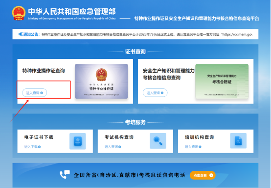 理論考試及實操考試均合格后可登錄應急管理部特種作業(yè)證書查詢官網(https://cx.mem.gov.cn/)或者官方微信公眾號“國家安全生產考試”公眾號,經注冊后,查詢個人特種作業(yè)證書。